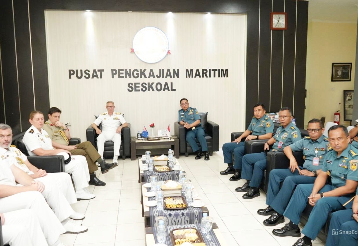 Komandan Sekolah Staf dan Komando Angkatan Laut (Danseskoal) Laksamana Muda TNI Ariantyo Condrowibowo diwakili Kepala Pusat Pengkajian Maritim (Kapusjianmar) Seskoal Laksamana Pertama TNI Salim, S.E., M.Phil., M.Tr.Opsla. menerima kunjungan kehormatan delegasi Chief of Joint Operation (CJOPS) Australian Defence Force (ADF) yang dipimpin oleh Vice Admiral Justin Jones, AO., CSC., RAN, bertempat di gedung Soedomo Pusjiamar Seskoal, Cipulir, Jakarta Selatan, Kamis (05/02/2026).